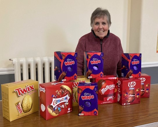 At the end of the afternoon all the guests were given an Easter egg to take home and the café presented Ginny with ten Easter eggs (pictured) as a donation to the Curry Rivel, Drayton and Hambridge Food Bank.